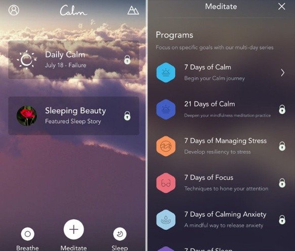 Posiblemente de las más completas en el mercado, en su versión gratis, Calm ofrece meditaciones guiadas (en inglés) para apoyar la relajación, para calmar a los infantes, para inducir al sueño profundo, disipar la ansiedad, entre otras. Con una interfaz cuidadosamente diseñada e intuitiva, podés elegir imágenes en movimiento, música o sonidos que complementen la práctica y programar el tiempo que se desea estar abstraído.