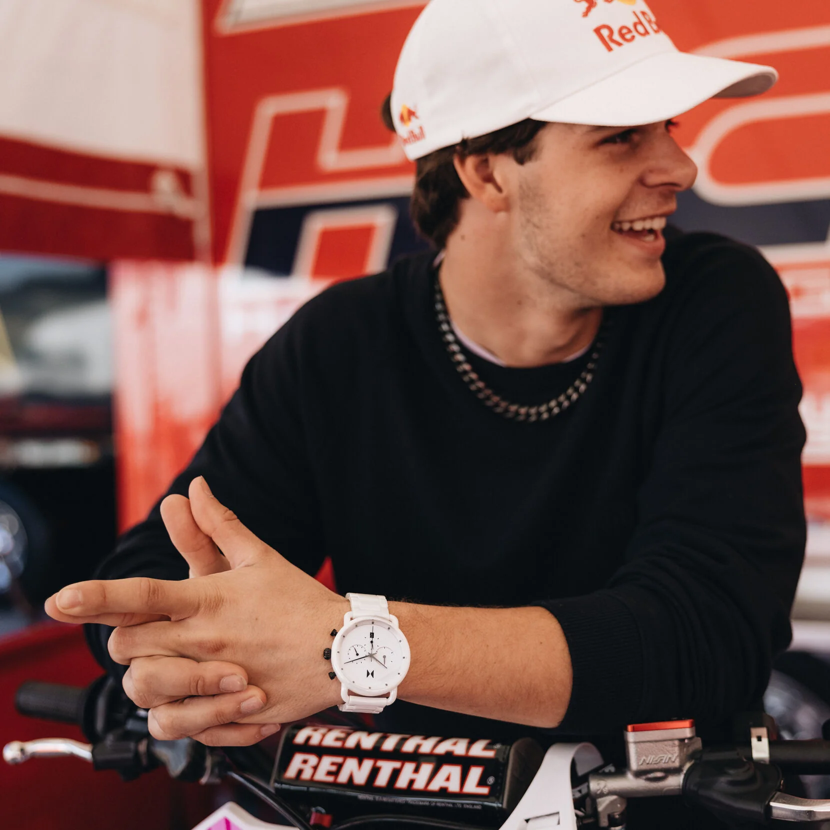 Optar por una correa o pulsera de calidad que complemente el tono blanco de la esfera. Las correas de cuero genuino en tonos suaves, como beige o gris claro, pueden añadir un toque de sofisticación. Las correas de silicona son ideales para un estilo más casual y deportivo.