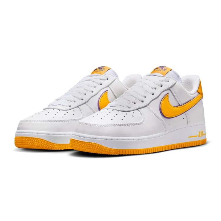 Durante la temporada 2002-2003, Kobe se calzó un par de Air Force 1 Mid personalizados con una parte superior blanca, la pipa dorada de los Lakers y detalles morados. Si bien no se trata del mismo modelo y silueta, los nuevos Kobe Bryant x Nike Air Force 1 Low replican su colorimetría.