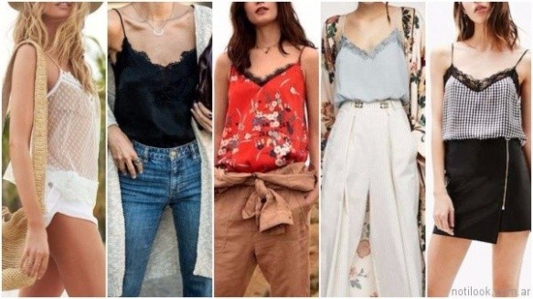 Siguen muy vigente al igual que la temporada anterior las prendas con detalles de encajes, aunque en esta viene en colores mas vivos y estampados.