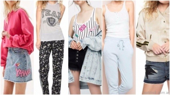 En moda urbana para teenager sobresale los apliques bordados, minidaldas y short de denim. Para abrigos las camperas bomber y buzos.