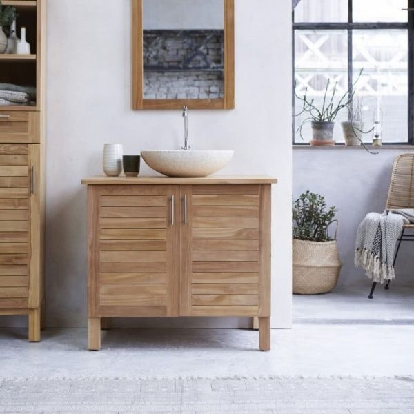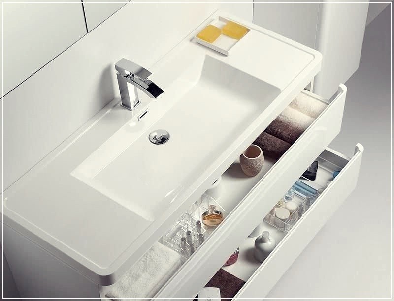 - Mueble para lavatorio o bajo encimera: Puede incluir el lavamanos, o estar por debajo del mismo con éste suspendido. Puede contar con cajones, estantes o puertas, y por supuesto permitir el acceso al sistema de drenaje.