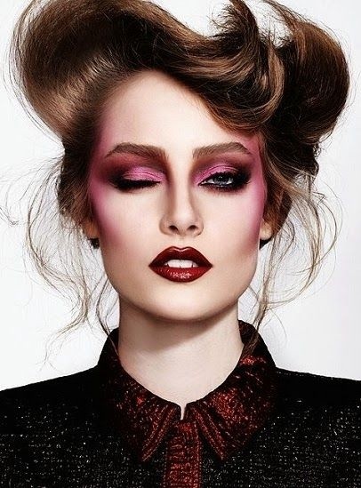 Es un maquillaje exagerado y amplio, en el sentido de que los ojos se cargaban de tonos y colores para impactar. Se resaltaban muchos los delineadores de ojos y boca, tanto como las sombras y base para la cara.