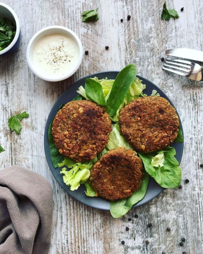 Las hamburguesas veganas pasan por un proceso más largo en el cual se combinan varios granos y otros ingredientes para su consistencia Las hamburguesas de garbanzos y lentejas son las más conocidas, aunque se pueden hacer de una gran variedad de ingredientes. Se puede usar pan hecho con harina integral, que de paso tienen muchos beneficios energéticos y fibra, lo cual ayuda a mejorar el funcionamiento gastrointestinal.
