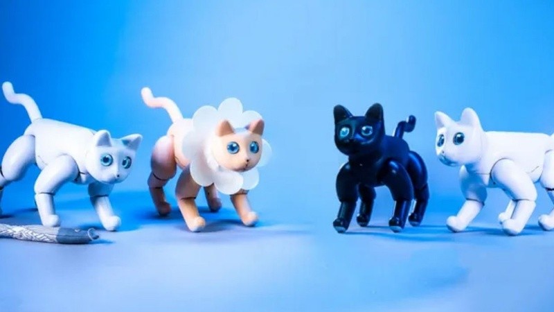 Este genial invento se parece a un pequeño gato y puede dormir, sentarse, estirarse, jugar con estambre y con sus patitas, además de responder a ciertos comandos programados por su amo.