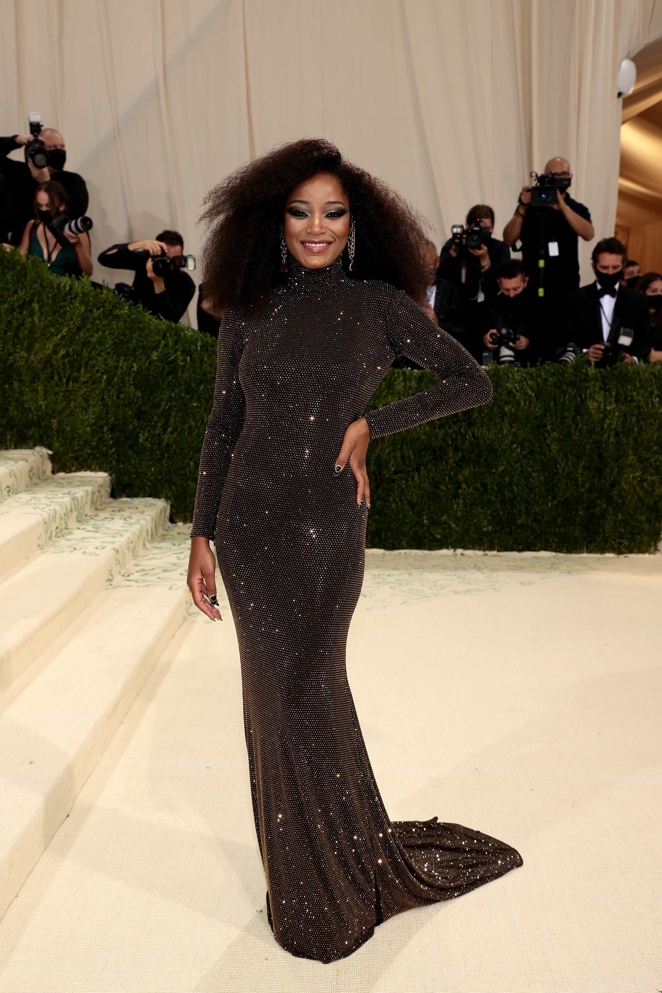 Con un look muy Diana Ross, Keke Palmer, presentadora de la antesala del evento, se lució con un outfit de Sergio Hudson en su colección otoño/invierno 2021 presentada en la última Semana de la Moda de Nueva York (teenvogue.com)
