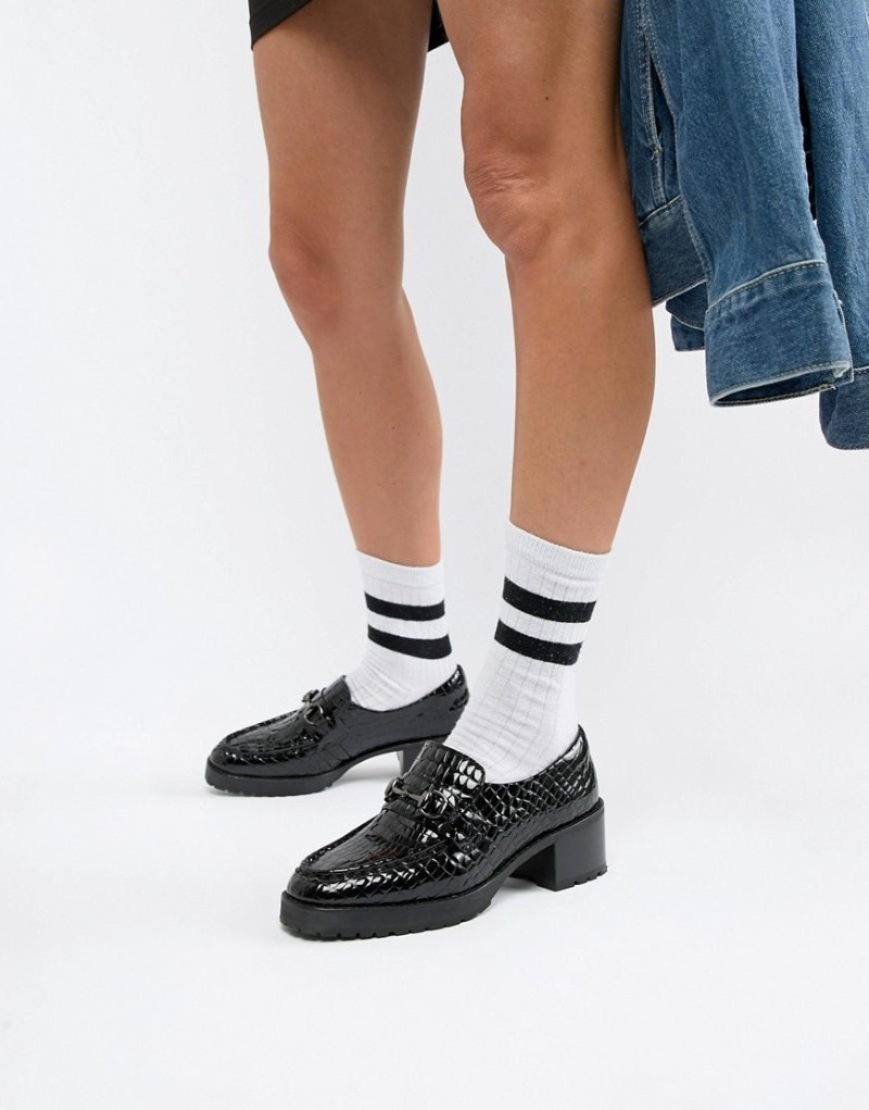 Se trata del "acabado de cocodrilo", una especie de animal print pero lograda no desde el color sino desde la textura. Así, el clásico mocasín negro da un paso más para jugar con los sentidos, mostrando este grabado que simula la piel del animal. Trajes, vestidos, faldas, cualquiera sea el acompañamiento, el calzado se adaptará a la perfección.