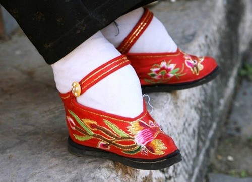 En 1912, se prohibió la práctica, aunque todavía se siguió practicando durante algunas décadas más de forma privada. Los peligros de esta costumbre para la mujer son evidentes: deformación del pie, amputaciones, fracturas y mucho dolor.