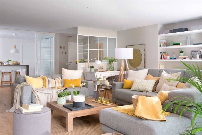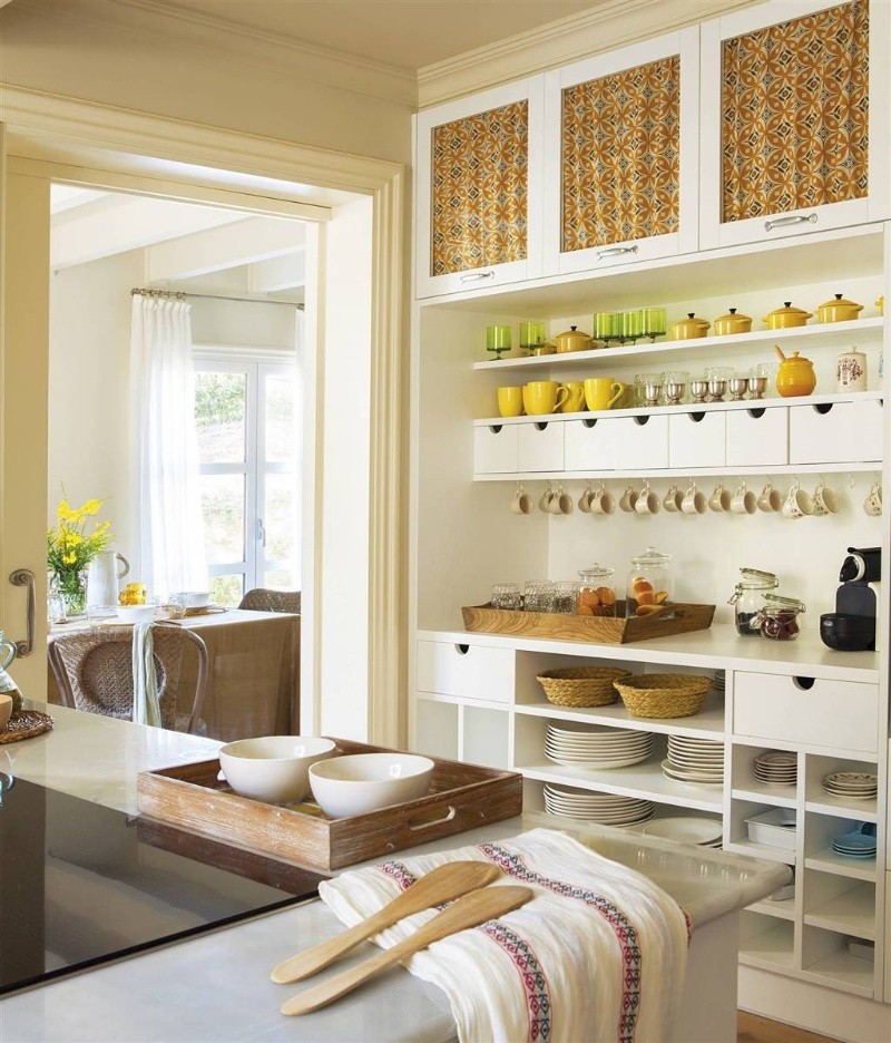 Sin generar demasiada sobrecarga, lucir un buen juego de tazas o platos en color mostaza que se vean a través de muebles sin puerta, colaborará con la decoración del espacio.