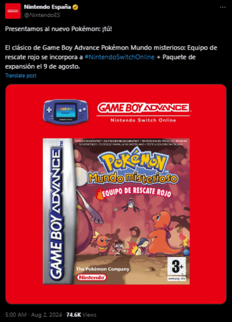 Sucede que, quienes cuenten con el Paquete de Expansión, podrán disfrutar de "Pokémon Mundo Misterioso: Equipo de Rescate Rojo" a partir del próximo 9 de agosto.