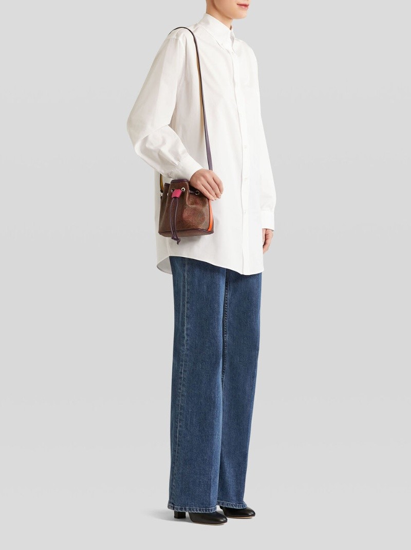 Con estética griega, esta Bucket Bag bordada es una de las opciones bohemias para un verdadero outfit del street style.