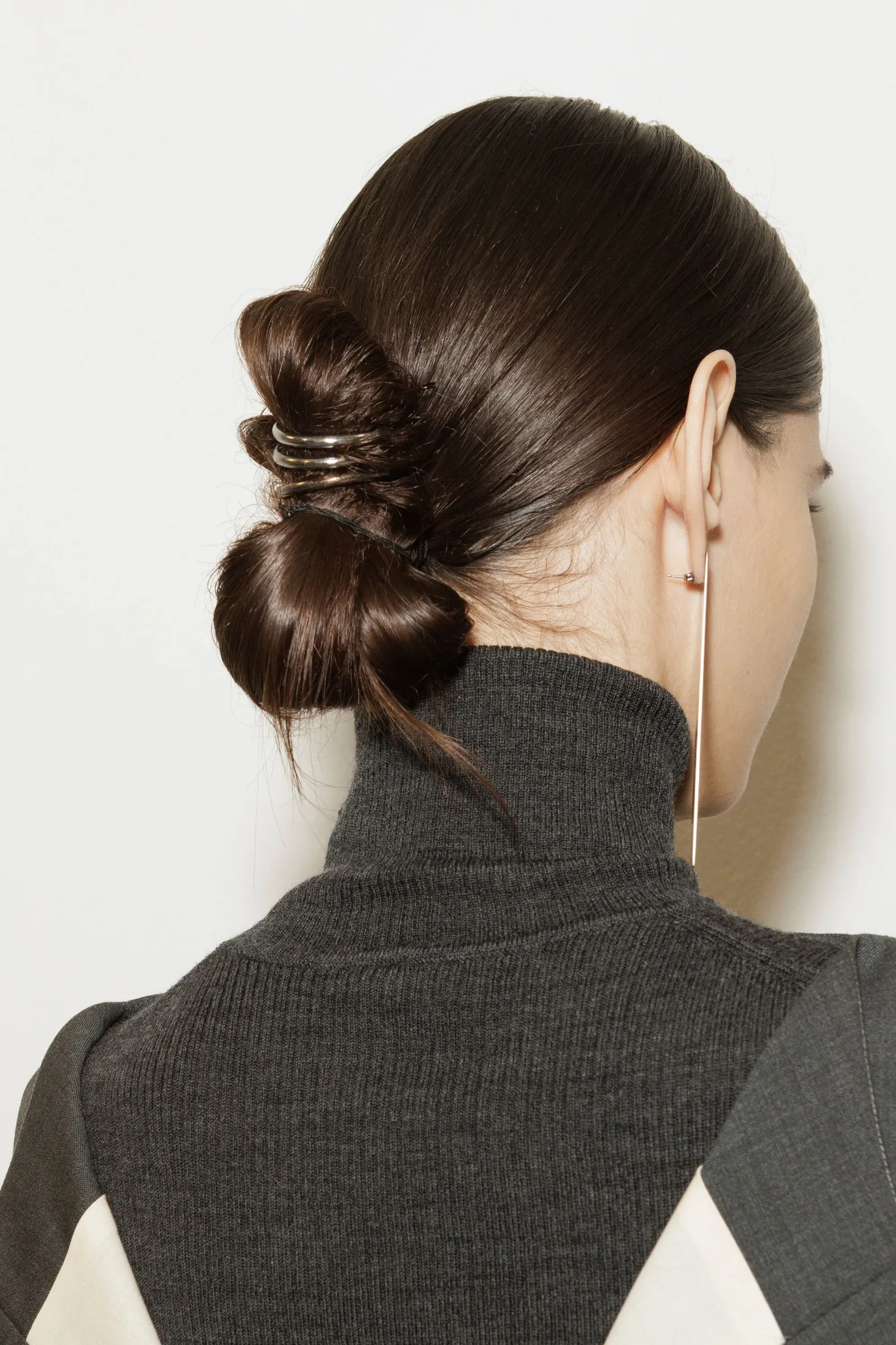 -Rodete de bailarina Y2K: Se trata de una opción más refinada que simplemente requiere de atarse el pelo en un rodete estilo bailarina, dejando que las puntas queden suletas y se abran en forma de abanico en la base.
