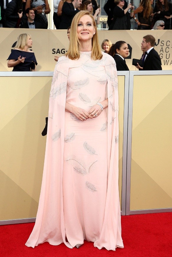 La actriz, que complementaba su diseño con clutch de Jimmy Choo, optó por el rosa, un color que sedujo a muchas de las estrellas como apoyo a las manifestaciones a favor de la igualdad de género que tomaron EEUU este fin de semana coincidiendo con el primer aniversario de la llegada de Donald Trump a la presidencia del país norteamericano.