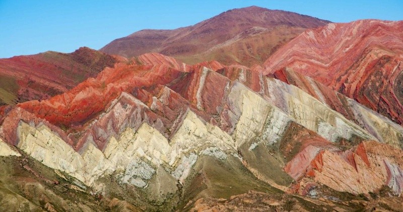 Se trata de una sierra ubicada a 25 kilómetros de la ciudad de Humahuaca. Si bien en un comienzo su acceso era dificultoso, hoy es un recorrido más para visitar aunque no sea de los más conocidos. Su forma es resultado de la erosión en ángulo de un conjunto de capas paralelas, lo que genera un efecto visual a modo de plegamientos en donde pueden visualizarse distintas tonalidades que van desde el blanco al ocre, del amarillo al rojo y muchos tonos más. Esta característica hizo que se lo comience a denominar como "el cerro de los 14 colores".