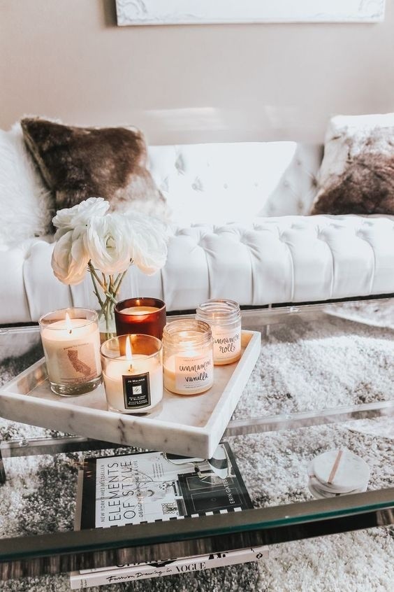 - Velas: Además de la calidez, las velas aromatizan el ambiente a gusto del comprador. Durante la primavera-verano quedarán mejor aquellos aromas florales y frescos y, para el otoño o invierno, aquellos aromas amaderados. Por otra parte, hay diferentes diseños para colocar en diversas partes, incluyendo la opción de usarlas como centro de mesa.
