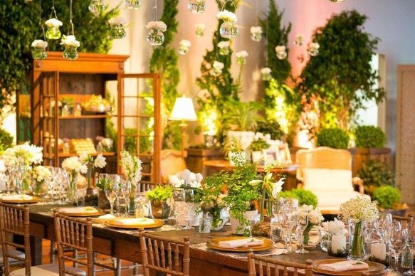Los jardines verticales que crecen y refrescan bares, tiendas, muros y edificios en las ciudades echarán raíces este año en los salones de eventos. En oposición al estilo más formal del punto anterior, la ambientación con paredes de vegetación serán más bien para reuniones informales.