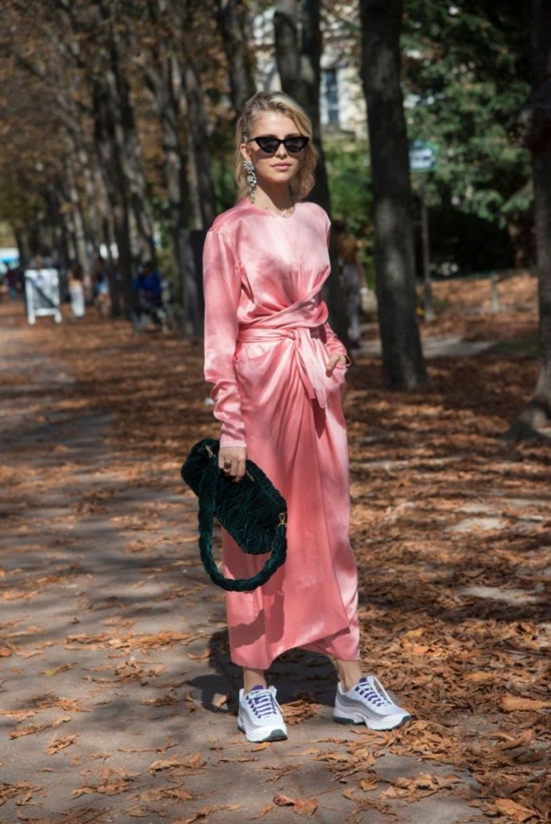 Los ideales son los vestidos midi o con algún tipo de detalle como un tajo que permita visualizar la zapatilla.