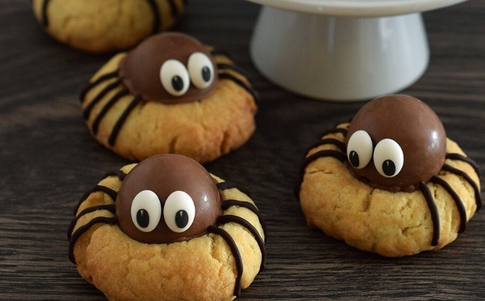 Hornear por 10 minutos, retirar y volver a agujerear con el dedo. Llevar nuevamente al horno durante 10 minutos más o hasta que se hayan dorado. Retirar y dejar enfriar. Colocar encima los bombones.