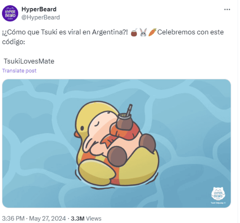 Desarrollado por HyperBeard, el videojuego irrumpió en la escena digital en 2021. Sin embargo, desde hace algunas semanas se volvió completamente viral en Argentina. Para celebrar el fenómeno, desde la empresa desarrolladora agradecieron con el código promocional TSUKILOVESMATE en donde el conejito se encuentra disfrutando de la típica infusión nacional: el mate.