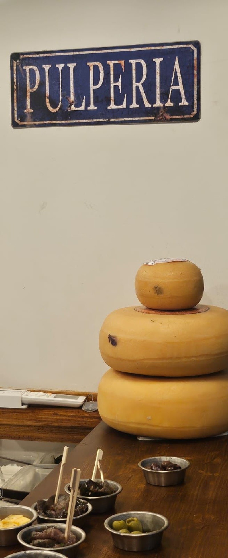 El espacio recuerda, tanto en la calidez como en su estética, a las clásicas pulperías de pueblos y clubes tradicionales. Banquetas y mesitas de madera se entremezclan con mesas y sillas en distintos sectores, así como también una pequeña barra y la opción de sentarse en la vereda. Al ingreso pueden observarse las distintas opciones de quesos y fiambres que son cuidadosamente servidos en las clásicas tablas de madera de estos tradicionales espacios.