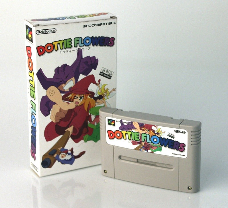 El videojuego en cuestión se llama Dottie Flowers y fue desarrollado por Goldlocke, siendo un nuevo proyecto para Super Nintendo. Lo novedoso es que solamente podrá conseguirse a nivel físico en cartuchos de Super Nintendo/Super Famicom, sin contar con una versión digital. Se trata de un cartucho FlashROM de 8 Mbit compatible con SNES/SFC, con funcionalidad de guardado en SNES.