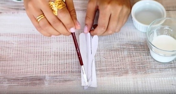 Agregá un poco de agua al pegamento, para que no te quede tan espeso, y llená por completo el molde con ayuda de un pincel.