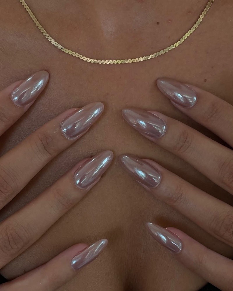 Las llamadas "uñas de jabón" son un verdadero must-have este año, sobre todo en quienes optan por opciones minimalistas y sofisticadas, haciendo alusión al concepto de "lujo silencioso". Se trata de una versión que simula el brillo de las pompas de jabón.