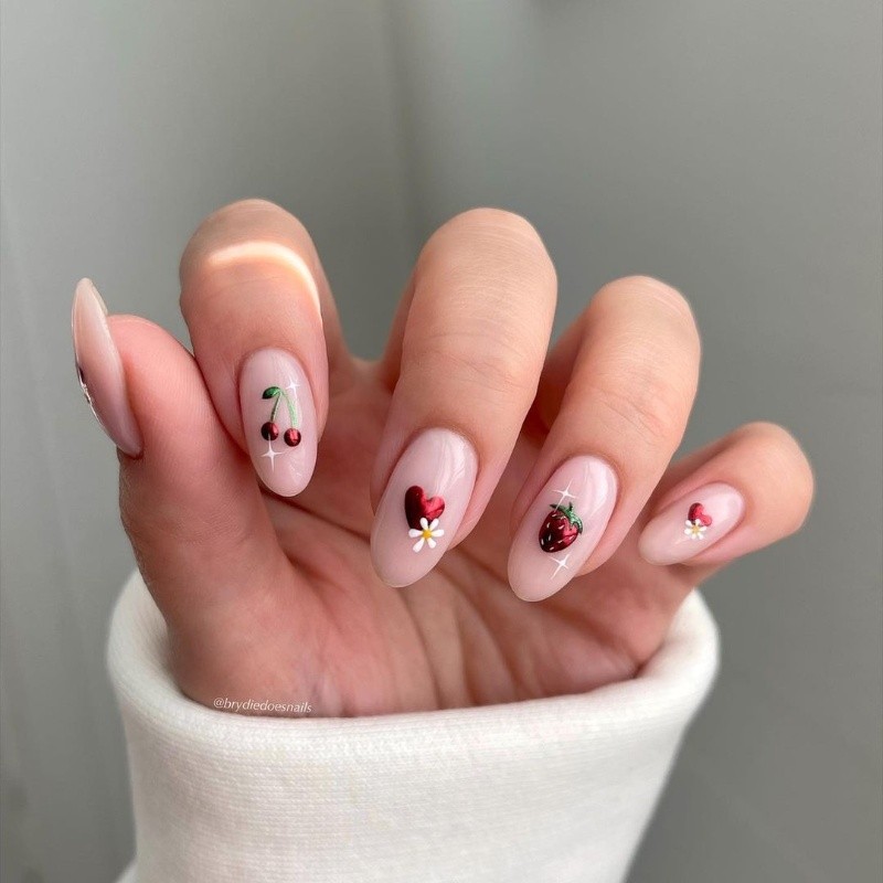 Si bien ya se vio el uso de esta opción en las uñas de Hailey Bieber o Kylie Jenner, una de las últimas en hacerlo fue Zendaya, la estrella de Euphoria. En este caso, la artista lució un diseño con flores en sus uñas con forma cuadrada, aunque se trata de alternativas que pueden crearse para distintas formas y largos de uñas.