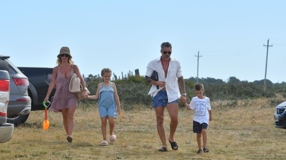 Marcelo Tinelli pasa sus días en su chacra de Punta del Este y para la playa elige trajes de baño lisos y musculosas que dejan ver sus brazos tatuados. Detalle: anteojos espejados en amarillo. Un super must 2018 para ellos.