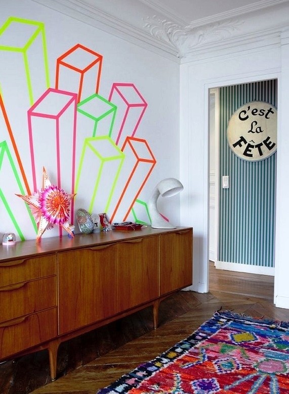 Si no se te ocurre ninguna idea, a continuación te mostramos diferentes opciones, publicadas por el portal decoralia.es. Tené en cuenta que, aunque se trate de una cinta adhesiva que resulta fácil de manipular, es aconsejable que antes de comenzar con tu vinilo, dibujes el diseño en la pared y te ayudes con una cinta métrica o regla y algo para cortar.
