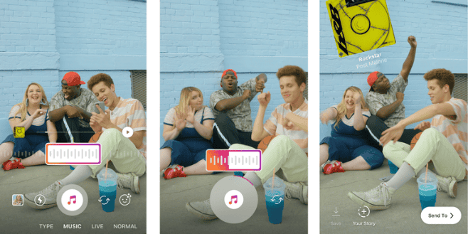 Por primera vez, la aplicación permitirá que los usuarios de la red social puedan añadir una banda sonora a las fotos o vídeos efímeros que suban a la plataforma, aumentando así sus posibilidades creativas. De momento esta función sólo estará disponible en varios países seleccionados, pero aseguran que en el futuro irá llegando a todo el mundo.