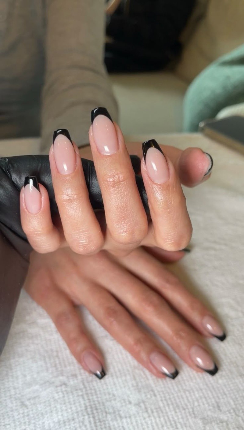 La clave de esta tendencia está en el contraste compuesto por bases nude, lechosas o translúcidas combinadas con puntas negras definidas, finísimas o incluso ligeramente difuminadas. El efecto es pulido pero con carácter, ideal para quienes aman lo clásico pero necesitan un detalle que marque diferencia.