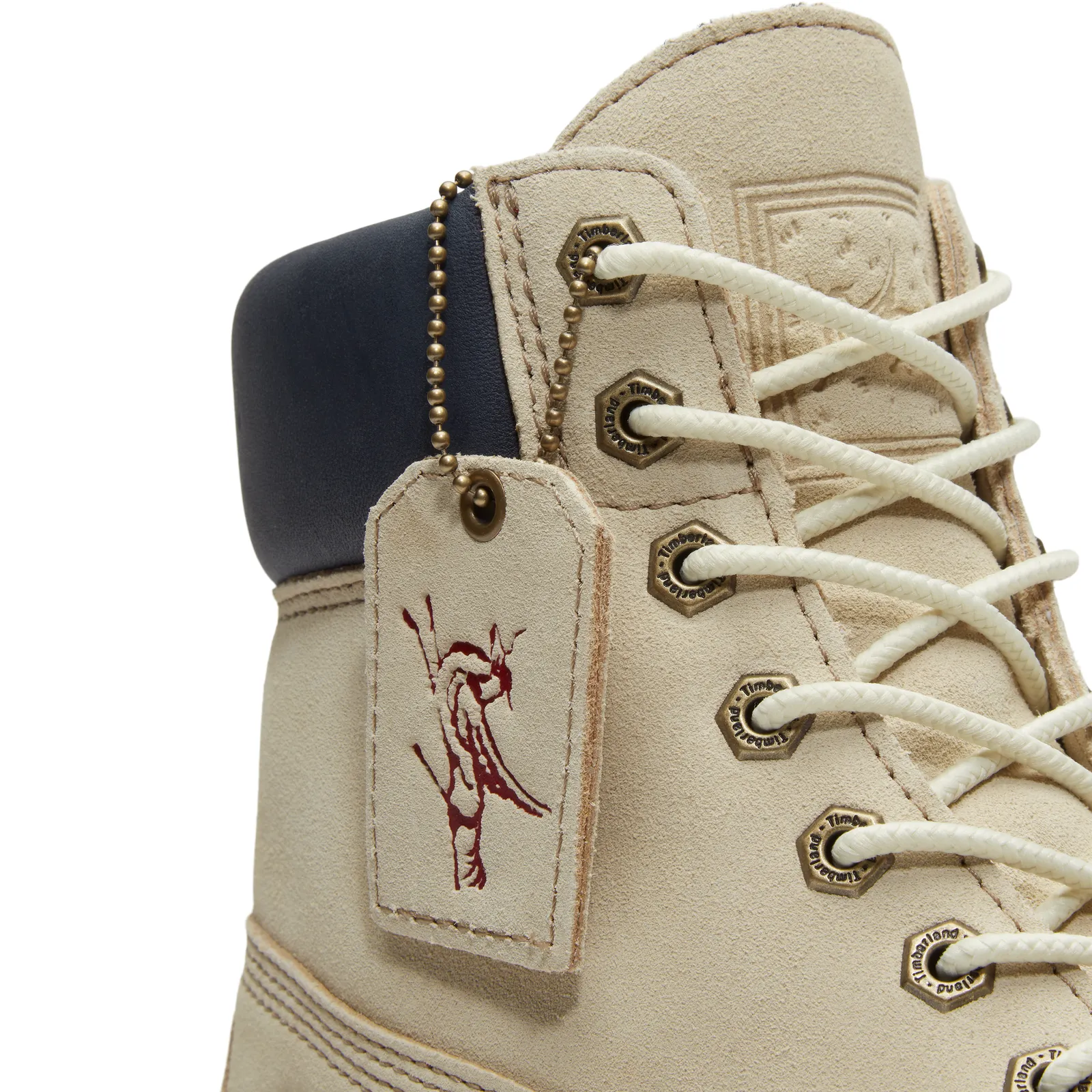 Esta versión especial toma la silueta de 6 pulgadas, famosa por su herencia ruda y su presencia en climas y estilos demandantes, y la viste con colores sobrios (blanco/beige) que evocan limpieza y versatilidad sin perder personalidad. El diseño no solo apuesta por la estética, sino que también incorpora detalles alusivos a la festividad, con cordones rojos, un color tradicional de buena suerte en la cultura china, y alusiones simbólicas de libertad y avance.