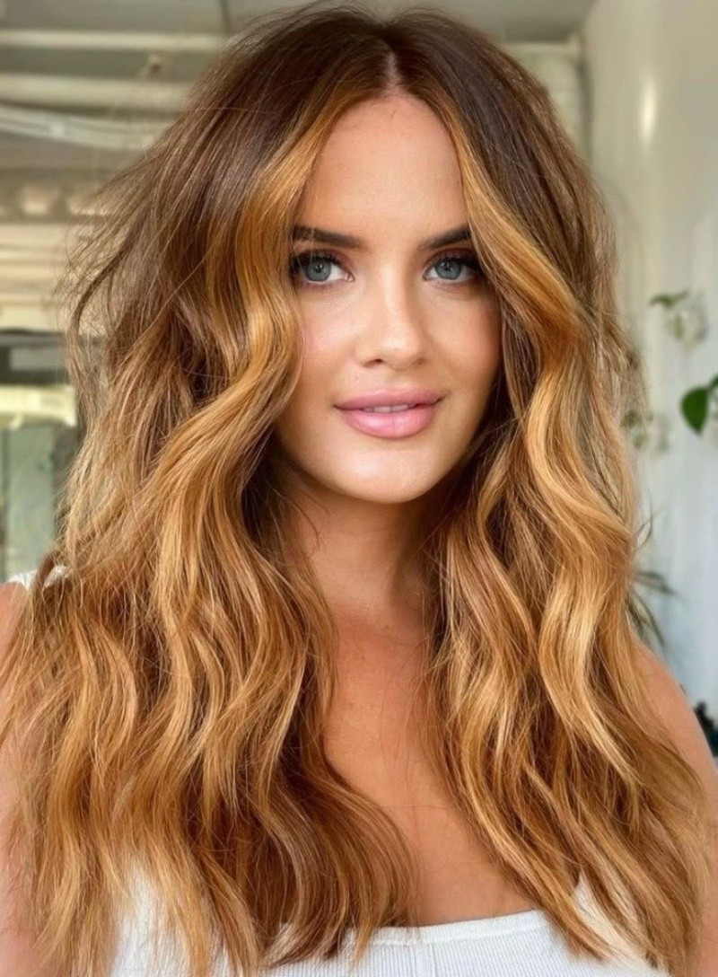 Para quienes buscan algo más jugado, aparece el strawberry caramel, una mezcla que incorpora reflejos cobrizos o rosados sobre una base caramelo clara. Este tono aporta personalidad sin perder naturalidad y es ideal para iluminar el rostro en los meses más grises. Además, tiene un toque juvenil que lo vuelve uno de los favoritos entre quienes quieren salir de lo tradicional.